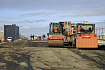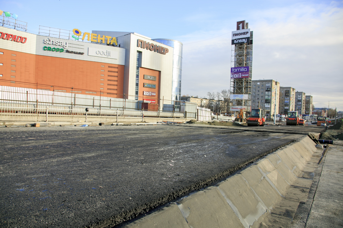 Также уложены нижние слои асфальтобетона на подъезде со стороны ТЦ «Пионер», теперь рабочие устанавливают бортовой камень и барьерное ограждение вдоль тротуаров, устройство которых выполняется параллельно. Подрядчик продолжает устанавливать новые опоры контактной сети.
