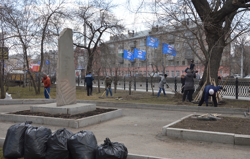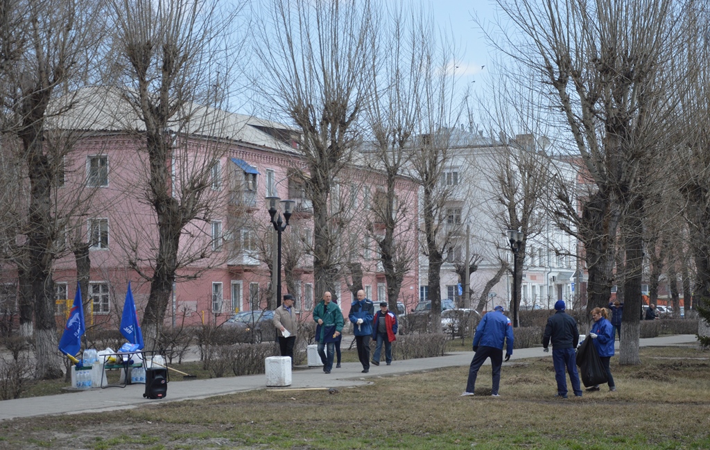 Около 100 сотрудников администрации города Барнаула, редакции газеты «Вечерний Барнаул» и членов партии «Единая Россия» очищали от мусора и прошлогодней листвы Зеленый сквер, располагающийся за зданием Художественного музея.