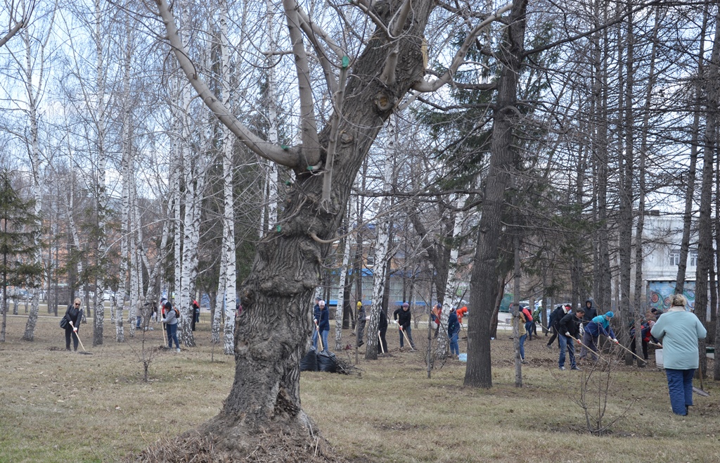 В сквере Химиков трудилось около 150 человек, среди которых работники администрации Октябрьского района, студенты Алтайской академии гостеприимства, а также директора сети магазинов «Новэкс».