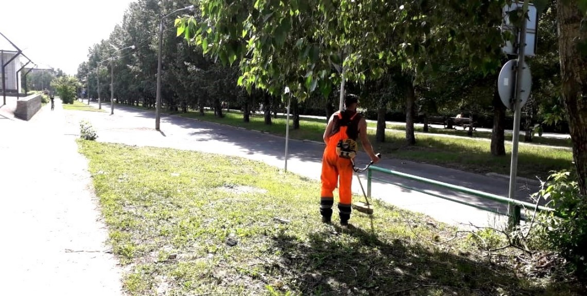На улицах Ленинского района продолжаются работы по покосу травы