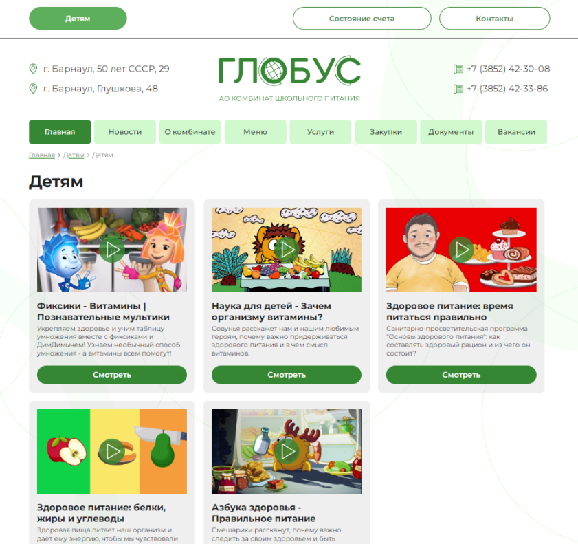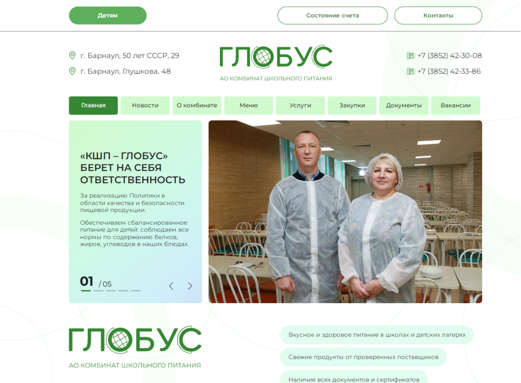 Образование и наукаС 1 марта начал работу сайт школьного комбината питания «Глобус» кшп-глобус.рф.