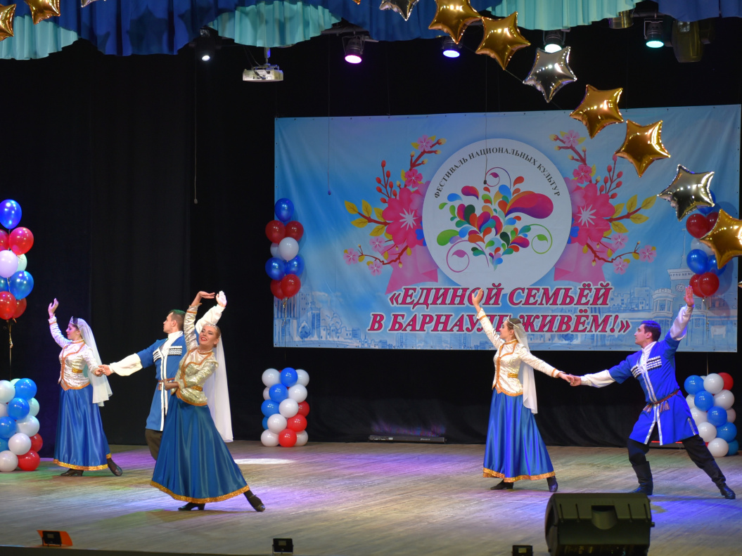 После вручения дипломов администрации города Барнаула руководителям национально-культурных объединений на сцене Дворца культуры началась настоящая феерия национальных песен и танцев, как нельзя лучше передающих сущность культуры каждого народа, проявление его эмоций, особенностей и характера.