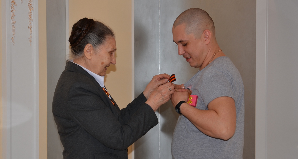 Глав семей поздравила член районного комитета ветеранов Великой Отечественной войны Тамара Изотовна Недашковская. Она пожелала им мирного неба и повязала георгиевскую ленточку.