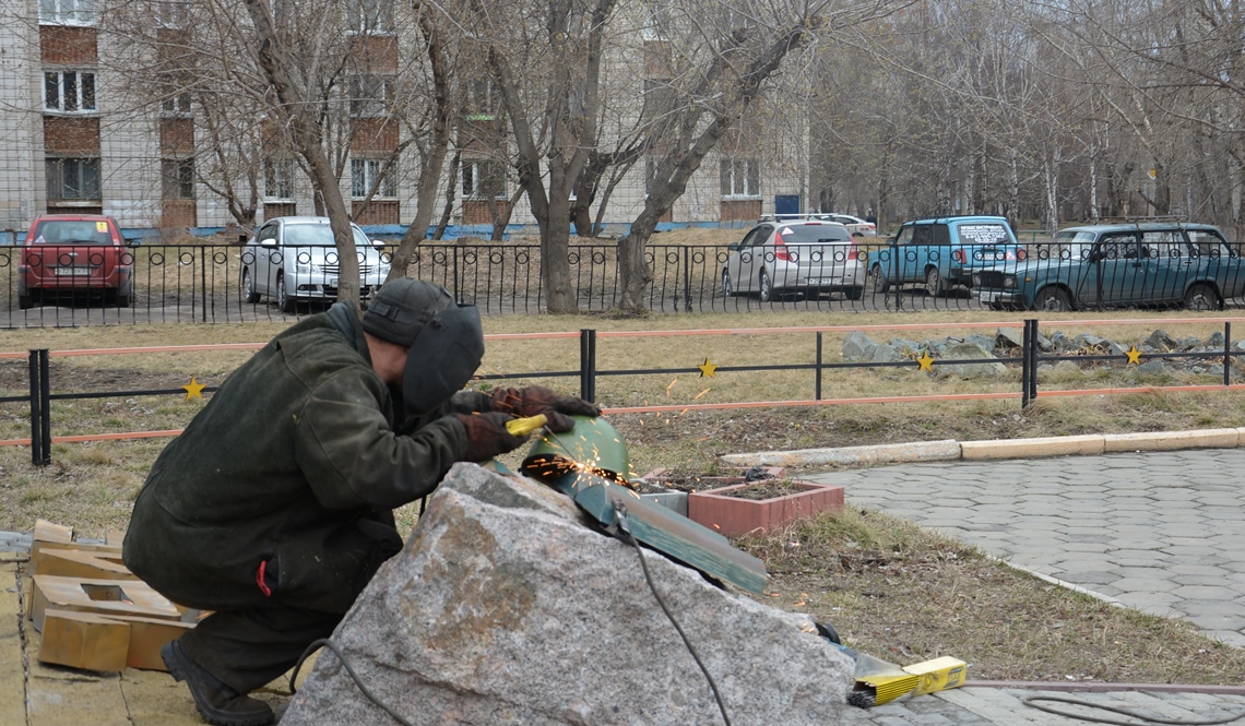 По инициативе руководителя Ленинского отряда народной дружины «Барнаульская» Азера Алиева была достигнута договоренность с ООО «Благоустройство-2» о проведении сварочных работ, в результате которых каска заняла свое место на постаменте. Приведены в порядок и другие элементы конструкции.