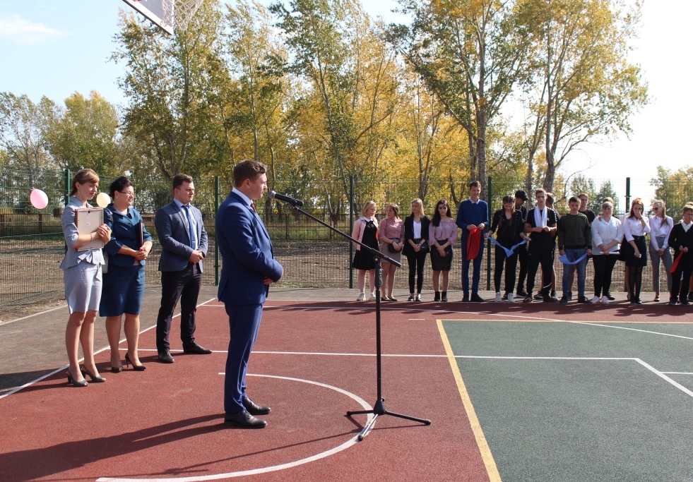 На торжественном открытии площадки присутствовали почетные гости: управляющий операционным офисом «Московский Проспект» Андрей Романов, заместитель председателя комитета по финансам, налоговой и кредитной политике города Барнаула Ирина Анцупова, заместитель главы администрации Центрального района, руководитель аппарата Ольга Новикова, глава Лебяжинской сельской администрации Петр Воронков. Они перерезали алую ленту на входе, поздравили школьников и педагогов с новоприобретением, выразили благодарность тем активным жителям, благодаря которым проект спортивной площадки был воплощен в жизнь. Ученики, достигшие значительных успехов в разных видах спорта, прошли по площадке, держа над головой яркие ленты; в их честь прозвучали аплодисменты. Сразу после торжественной части над площадкой раздался свисток: начались соревнования по баскетболу среди старшеклассников.