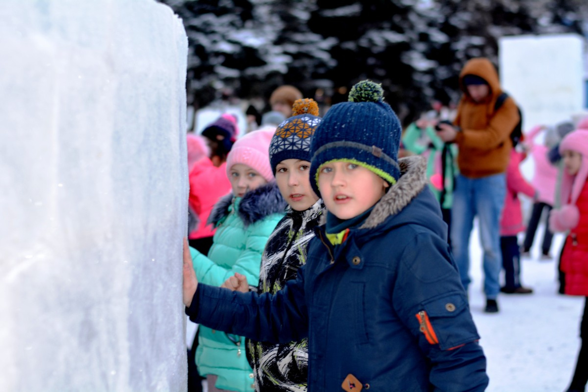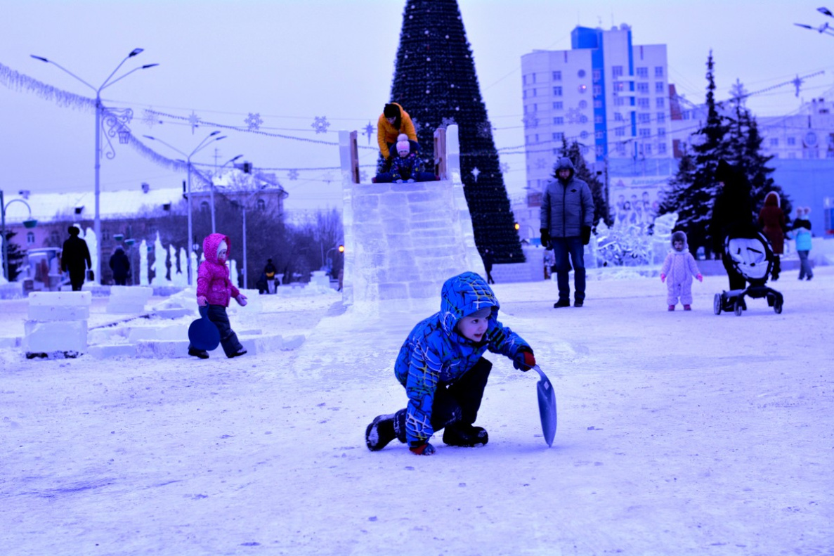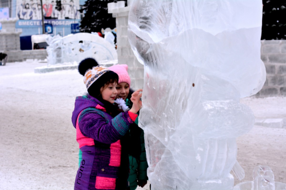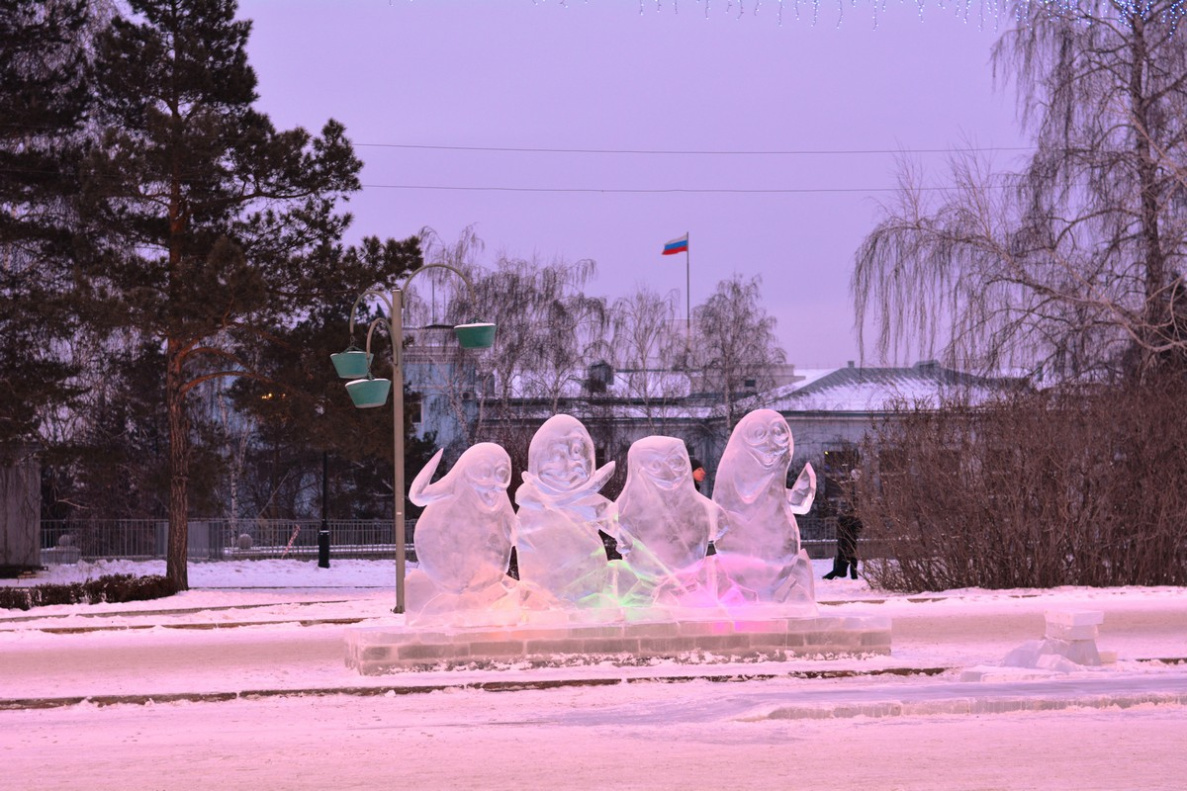 Традиционно площадку украсили скульптуры изо льда, сделанные барнаульскими резчиками на конкурс ледяных фигур.
