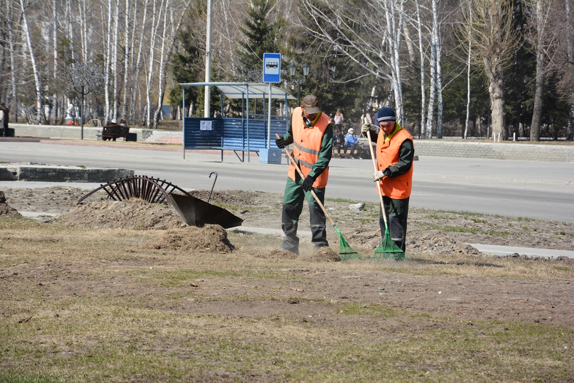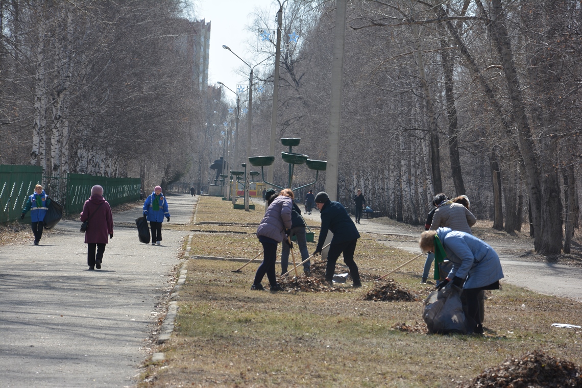 В «чистый четверг» барнаульские общественники очищали после зимы площадь Мира и аллею Целинников