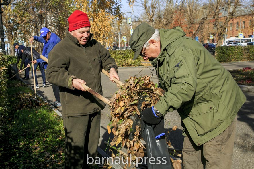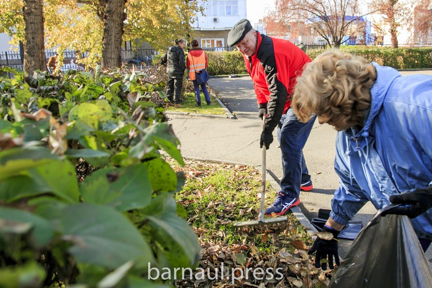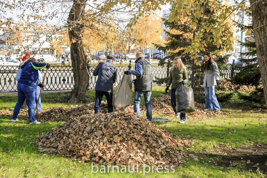 Благоустройство20 октября в Барнауле в рамках проведения месячника осенней санитарной очистки и благоустройства состоялся общегородской субботник. Сотрудники организаций, муниципальные служащие, депутаты, общественники, студенты, волонтеры и активные жители Барнаула вышли на улицы города для уборки территории.