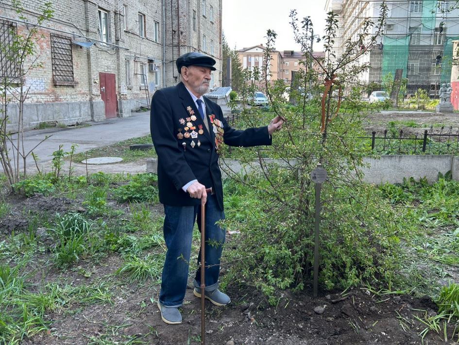 Саженец был предоставлен МБУ «Благоустройство и озеленение». Работники учреждения совместно с сотрудниками администрации района и соседями ветерана высадили дерево.