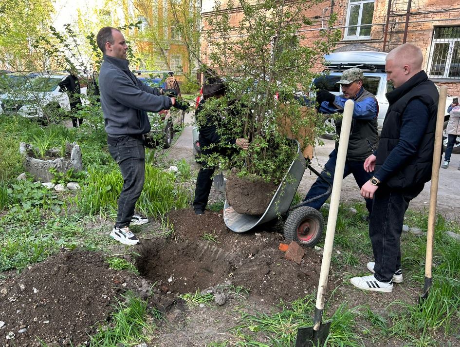 В преддверии празднования 80-й годовщины Победы в Великой Отечественной войне 1941-1945 гг. по инициативе администрации Октябрьского района около дома участника Великой Отечественной войны Геннадия Федоровича Окорокова высадили молодой саженец яблони.