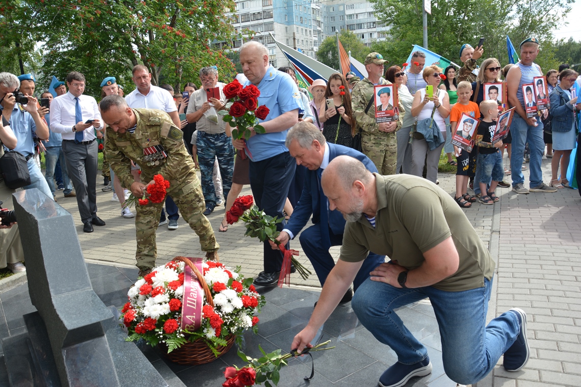 На мероприятии минутой молчания почтили память десантников, погибших в различных военных конфликтах, в том числе в специальной военной операции. Затем состоялось возложение цветов к памятному знаку героям.