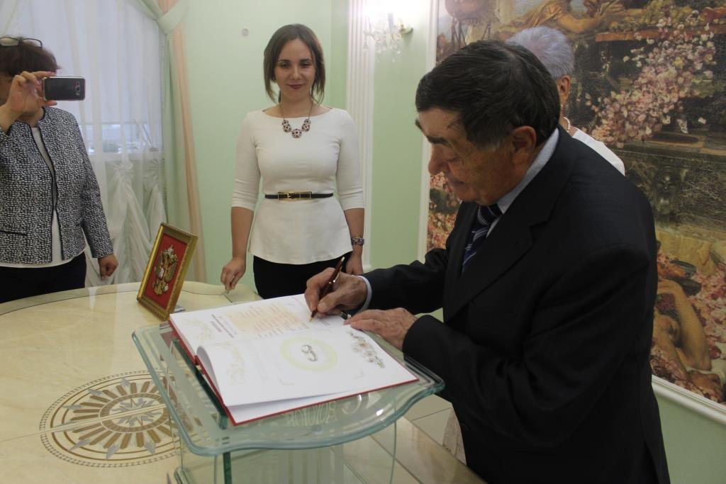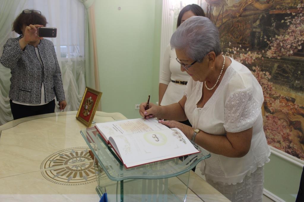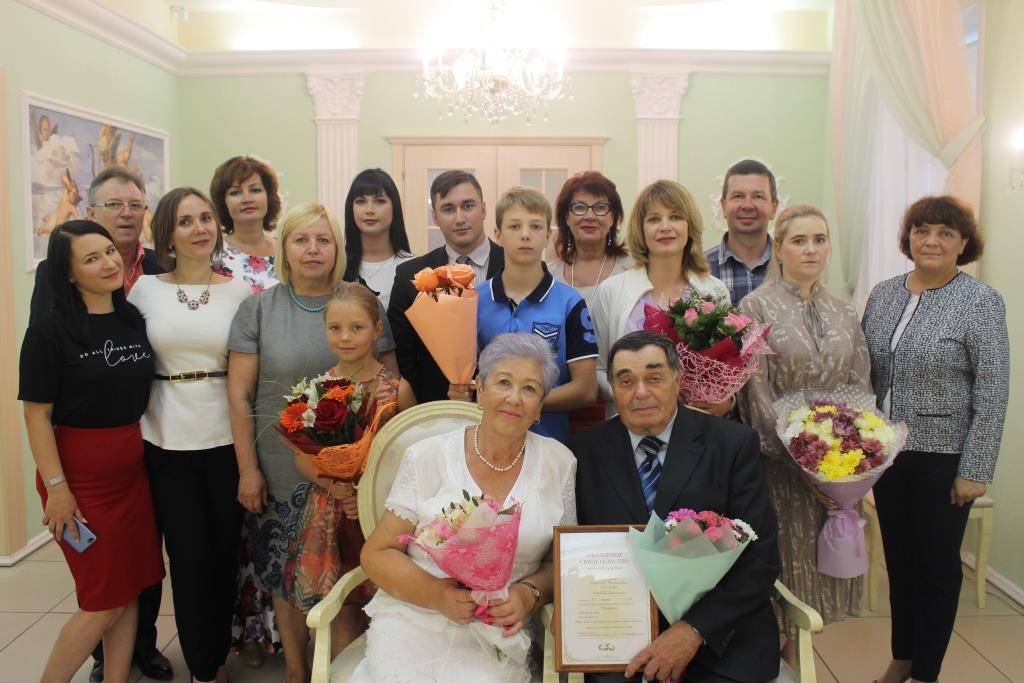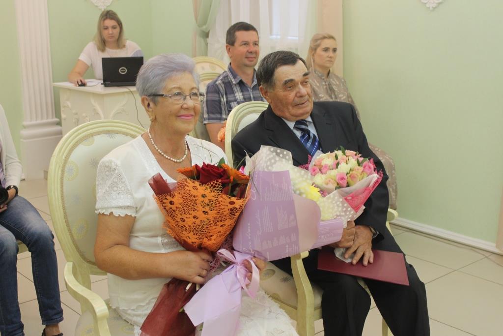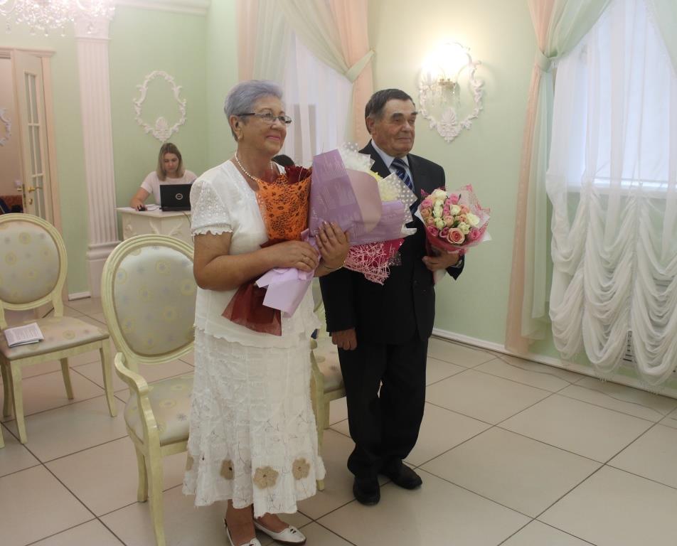 Торжественное мероприятие проходило в отделе ЗАГС по Центральному району. Юбиляров поздравили заместитель главы администрации Центрального района Руслан Маршалкин и председатель Совета женщин Центрального района Ирина Красилова.