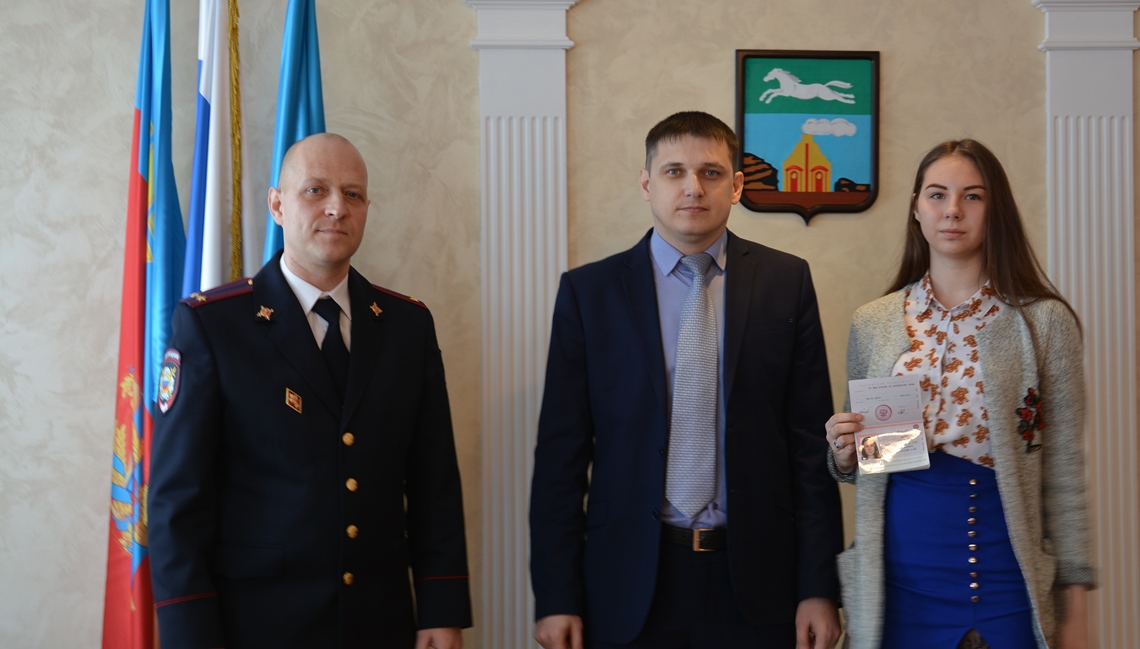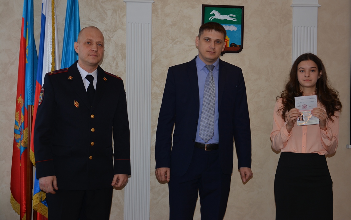 Вручали паспорта первый заместитель главы администрации района жилищно-коммунальному хозяйству Евгений Авраменко и начальник отдела по вопросам миграции районного отдела полиции Дмитрий Блинов.