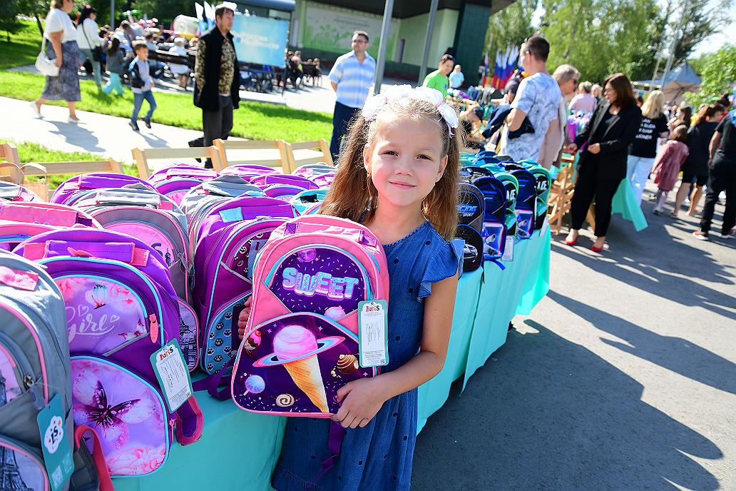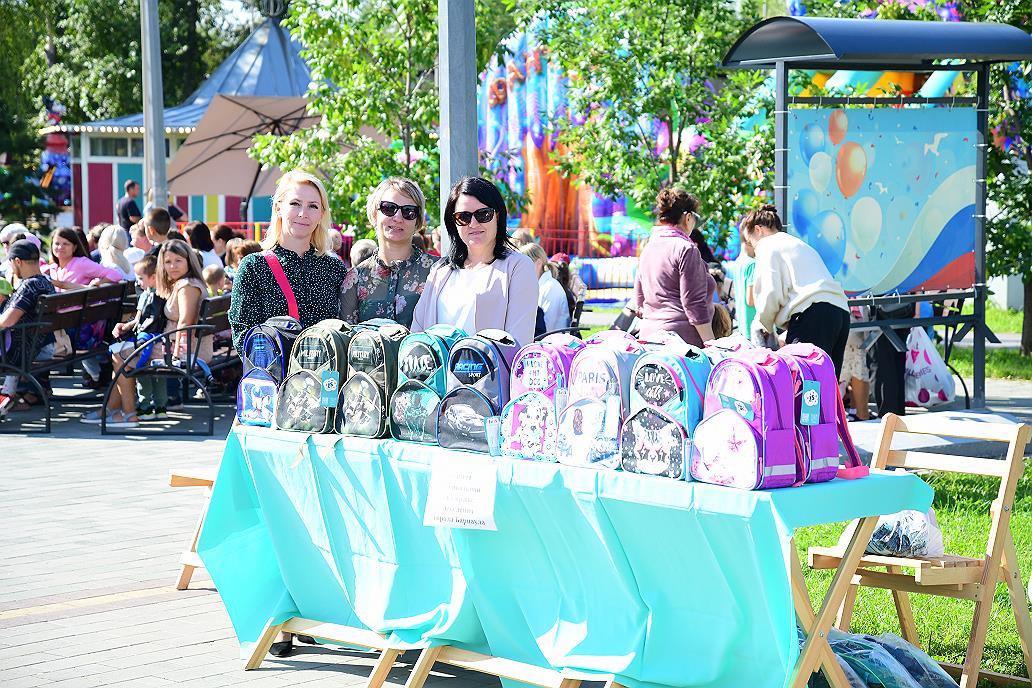 В барнаульском парке культуры и отдыха «Центральный» 23 августа будущим первоклассникам подарили первые рюкзаки, наполненные канцелярией. Торжественное вручение прошло в рамках акции «Соберем детей в школу» на общегородском празднике «Здравствуй, школа!». Организатор мероприятия — комитет по социальной поддержке населения города Барнаула.