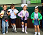 Красочную канцелярию также получили очаровательные двойняшки в больших белых бантах Вероника и Виктория. Они пришли на праздник с бабушкой — Валентиной Брюховой.