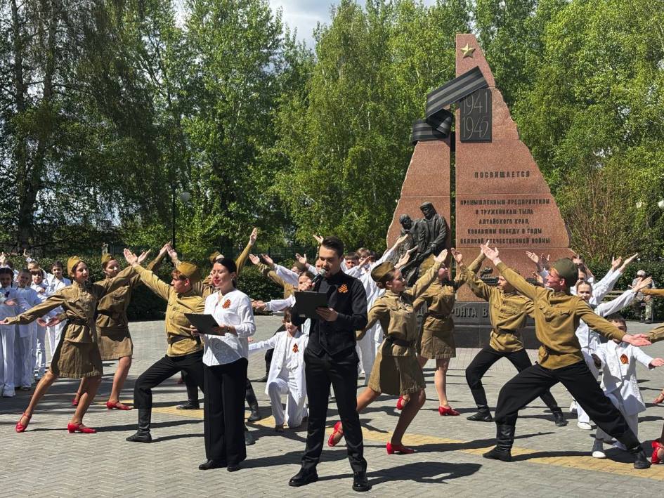 Песня Великой Победы прозвучала в Барнауле у памятника заводам и труженикам тыла времён Великой Отечественной войны