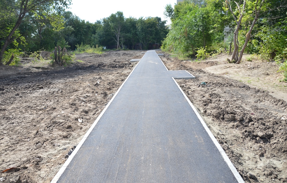 В настоящее время благоустройство продолжается. Работники подрядной организации занимаются выравниванием грунта, обустройством газона, Немного позже вдоль пешеходной дорожки установят парковые диваны и урны.