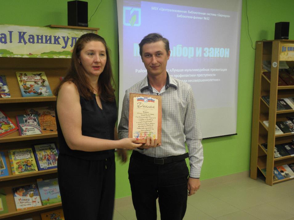 По инициативе администрации Индустриального района в рамках Дня молодежи был проведен конкурс на лучшую мультимедийную презентацию по вопросам профилактики преступности и правонарушений среди несовершеннолетних «Мой выбор и закон».