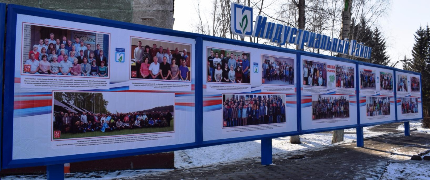 БизнесВ год 80-летия Алтая юбилейные даты отметили и многие предприятия Индустриального: «Алтайские макароны» (75 лет), «Завод ячеистого бетона» (55 лет), «Алтайэнергожилстрой» (30 лет), «Завод ЖБИ-100» (25 лет), «Барнаултехоптторг» (25 лет), «Алтайгидрокомплект» (20 лет), «Евробус-плюс» (20 лет), «Персона» (20 лет), клиника «Medical Estate» (20 лет), кондитерский цех «Эдэм» (20 лет), автоцентр «Юго-Западный» (15 лет), «Текстиль центр» (15 лет), «Агроцентр» (15 лет), «Барнаульская халвичная фабрика» (15 лет), «Алтайский завод автотракторного спецоборудования» (10 лет). Все они размещены на Доске почета.