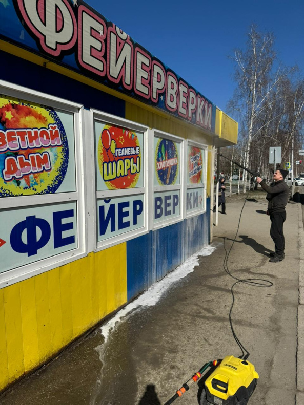 Предприятия потребительского рынка (торговые центры, сети, магазины, кафе и др.) организовали работу по помывке фасадов объектов, убирают прошлогоднюю листву на газонах, очищают клумбы и цветники.