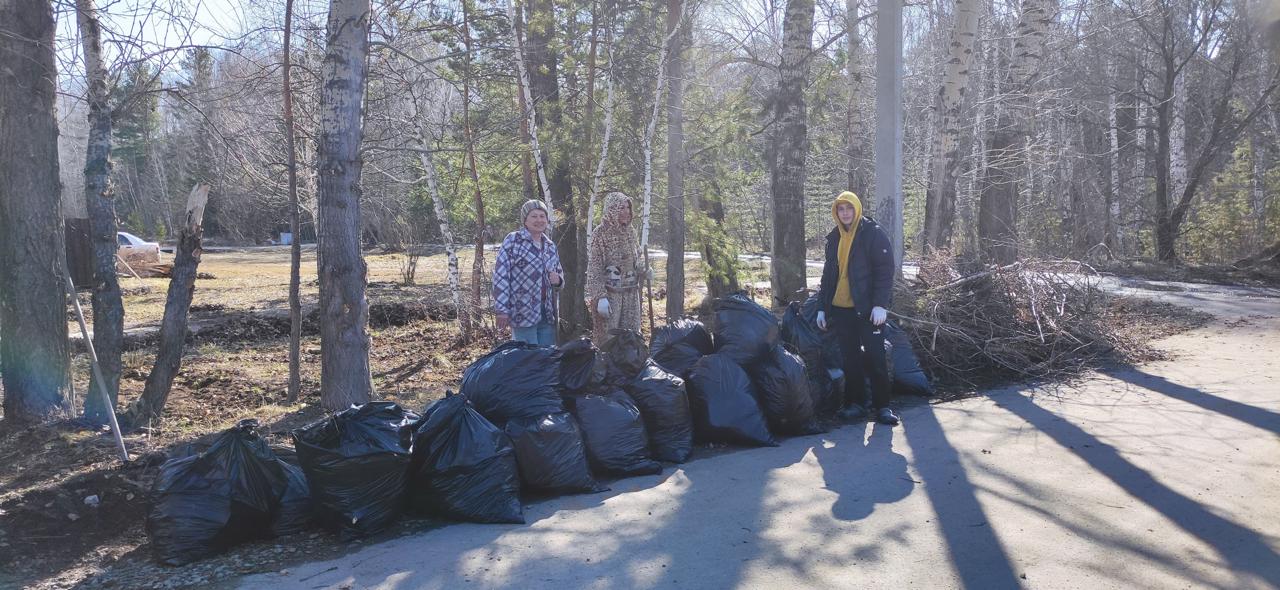 Во время субботника было собрано более 80 мешков с листвой и мусором, веток, горючих материалов.
