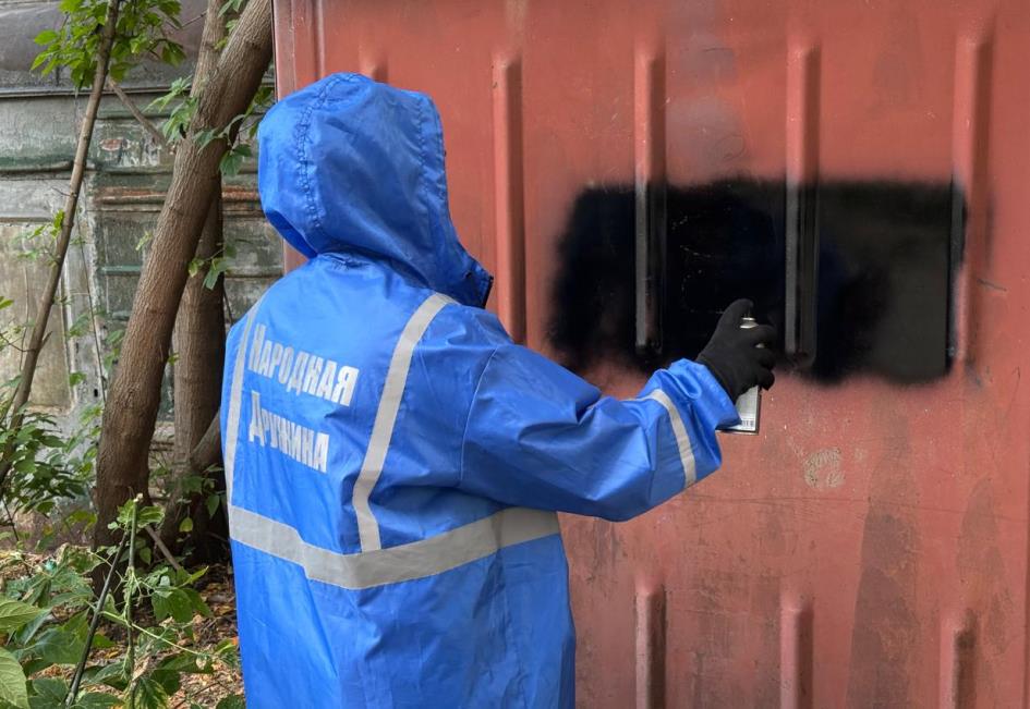 Участники рейда закрасили 11 надписей на гаражах, расположенных по улицам Чеглецова и Чихачева, а также раздали информационные памятки по противопожарной безопасности.