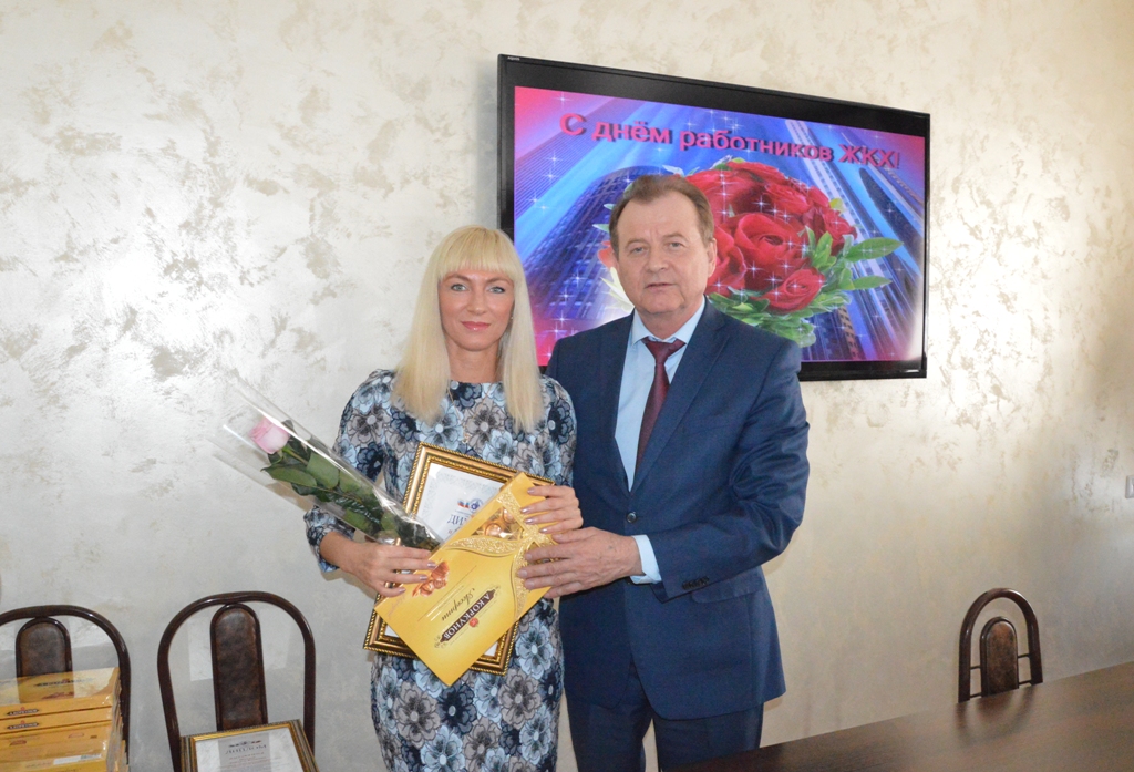 Почетные грамоты и Благодарственные письма районной администрации получили 23 человека, среди которых слесари, дворники, мастера и др. Кроме этого, в этот день отметили 29 домкомов, которые приняли участие и стали победителями в городском конкурсе «Лучший председатель совета многоквартирного дома города Барнаула».Так, накануне глава администрации Октябрьского района Вячеслав Новиков поздравил работников сферы бытового обслуживания и жилищно-коммунального хозяйства с профессиональным праздником: