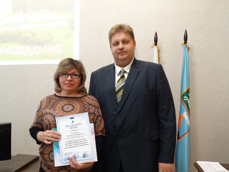 Людмила Зубович также отдельно поздравила заведующего неврологическим отделением Александра Кандрина с присвоением ему почетного звания – заслуженный врач РФ: