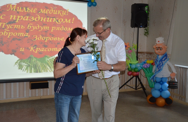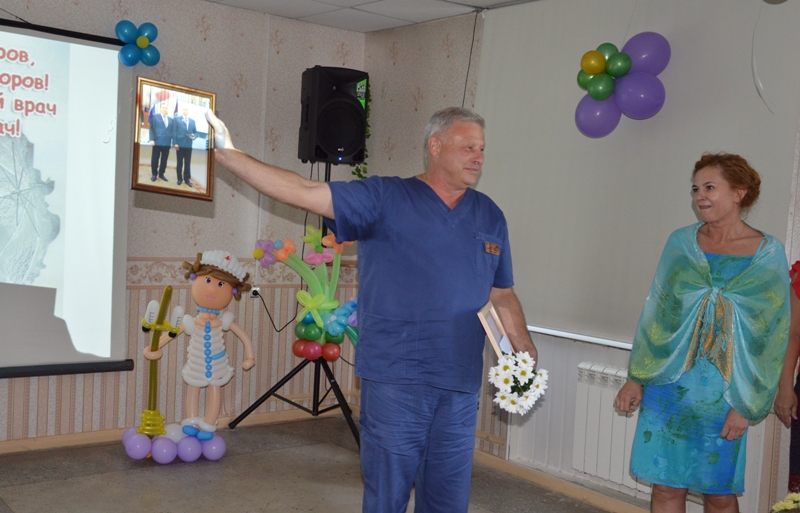 От имени губернатора Алтайского края Александра Карлина и краевого министерства врачей поздравил заместитель министра здравоохранения Алтайского края Константин Гордеев: