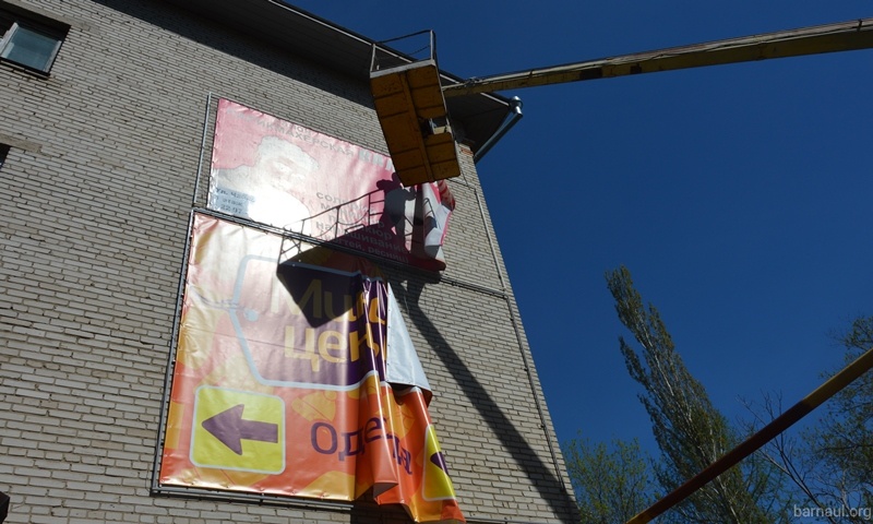 С улиц Барнаула ежедневно убирают самовольно установленные рекламные конструкции