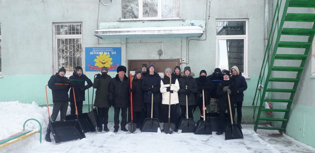 «Снежный штурм»: барнаульские волонтеры помогли расчистить от снега территории детских садов