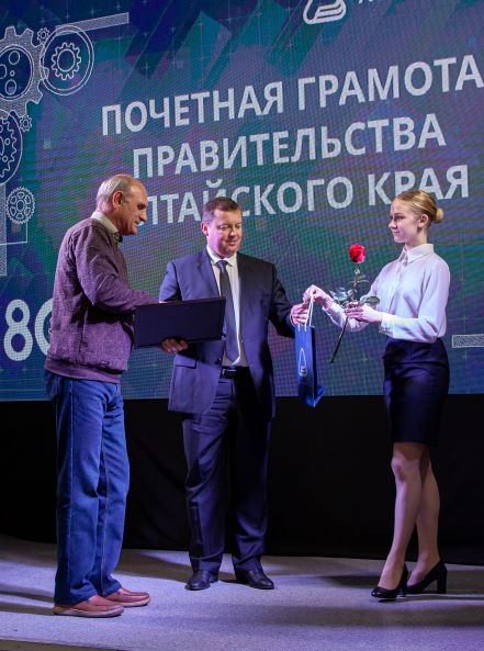 Также с поздравительной речью выступил председатель комитета Алтайского краевого Законодательного Собрания по промышленности, предпринимательству и туризму:«История завода ‑ это пример самоотверженного труда всех поколений работников. Тех, кто стоял у истоков его создания, зарождал традиции производства, вносил большой личный вклад в освоение новых технологий, кто хранил и приумножал славные традиции и опыт предыдущих поколений. Нельзя не отметить ваш добросовестный труд, профессионализм и преданность делу. Пройден большой и славный путь, впереди еще много задач и перспектив для развития».