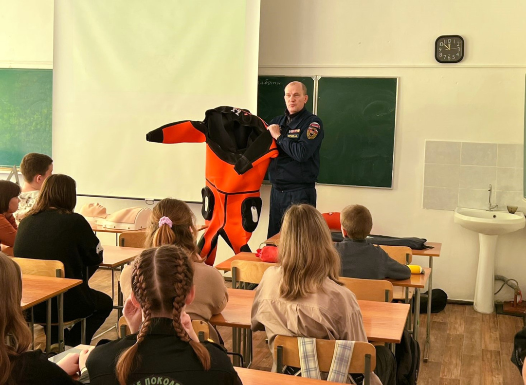 Чтобы понять, как все происходит на практике, школьники отработали доврачебную помощь на специальном манекене. Кроме того, ребята увидели настоящее оборудование и обмундирование, которое используют для спасательных работ на зимних водоемах.