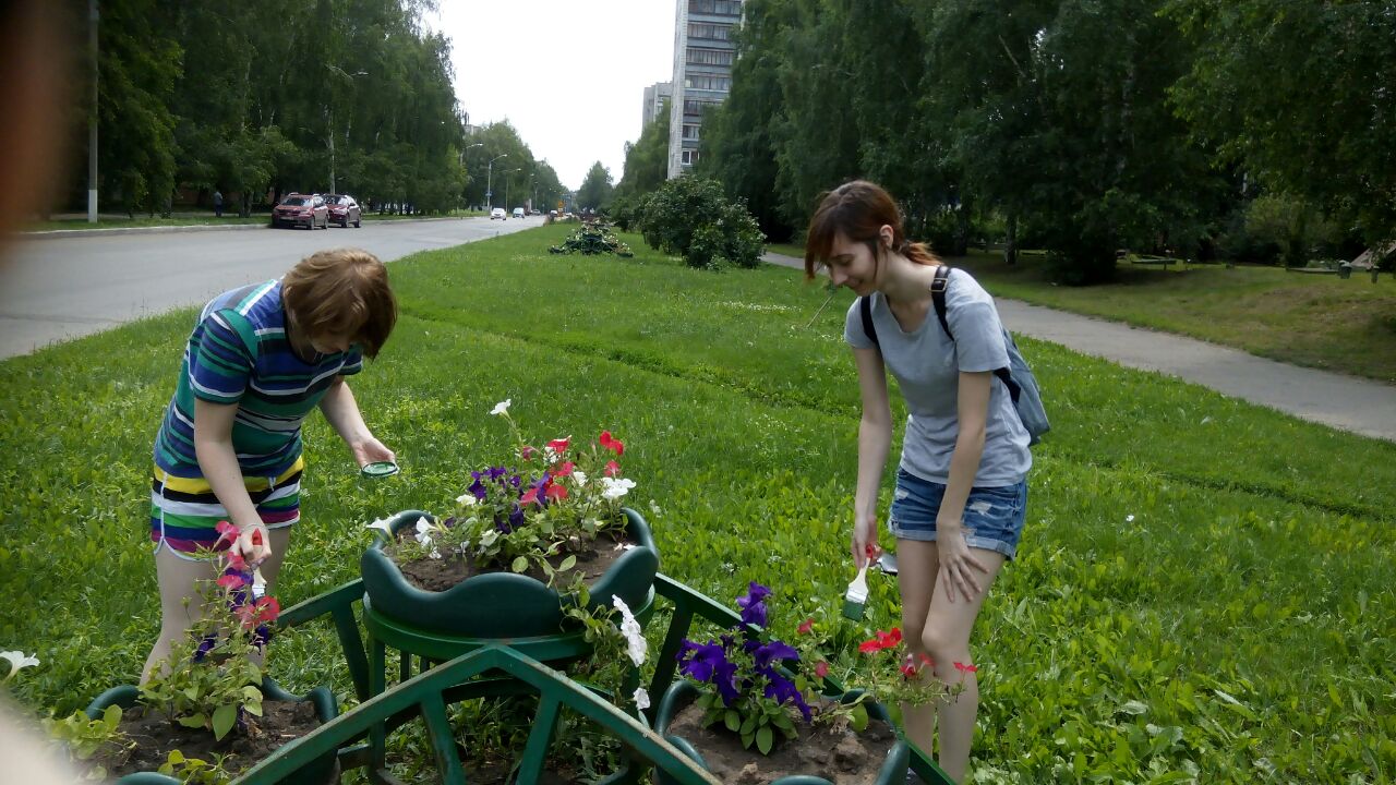 В Индустриальном районе студенты из экологического отряда посадили цветочную рассаду. Две новые клумбы на «Сиреневом бульваре» (ул.Сиреневая, 7), которые обустроила районная администрация, теперь украшают 800 корней петуний, бархатцев и целозии. Также юные экологи собрали на бульваре мелкий мусор, очистили газоны, пропололи ранее оформленные клумбы и вазоны.