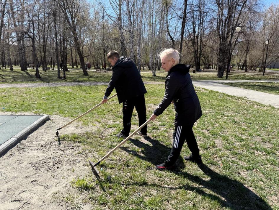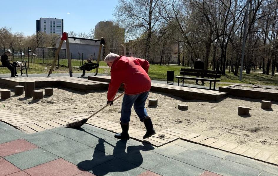 Активисты Совета ТОС микрорайона «Поток» совместно с неравнодушными жителями наводили порядок на детской площадке, расположенной в сквере Химиков.
