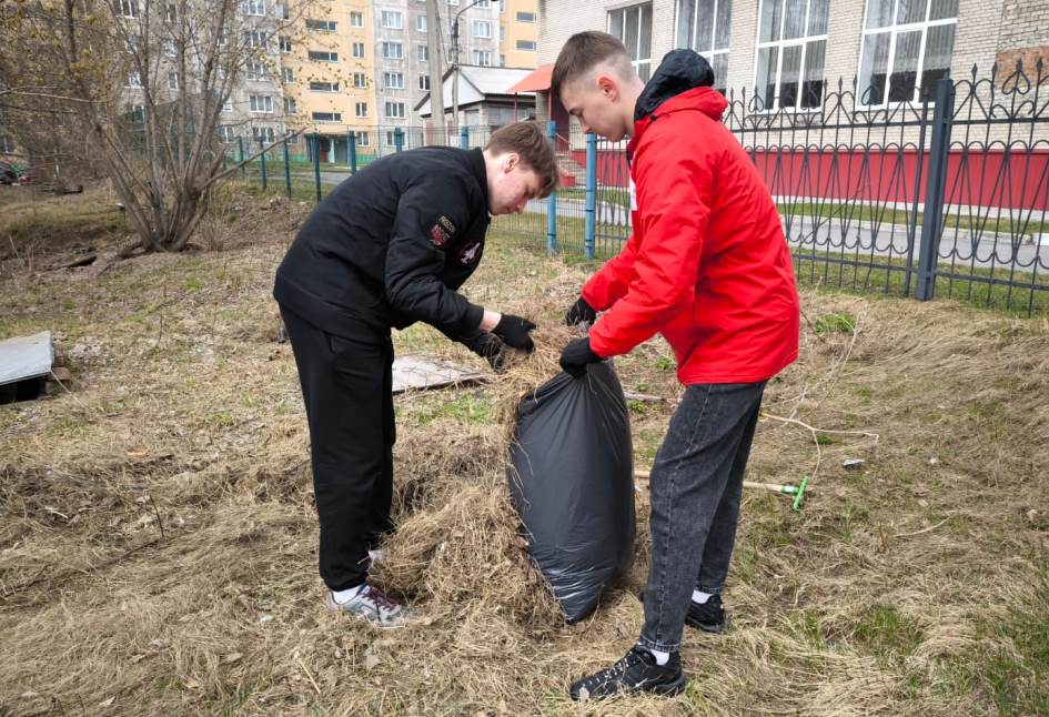Так, Совет ТОС Западного микрорайона совместно со студентами из отряда «Воздушная разведка» очищали от мусора и прошлогодней листвы территорию по ул. Горно-Алтайской, 8-10.