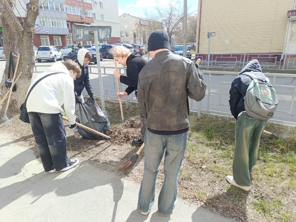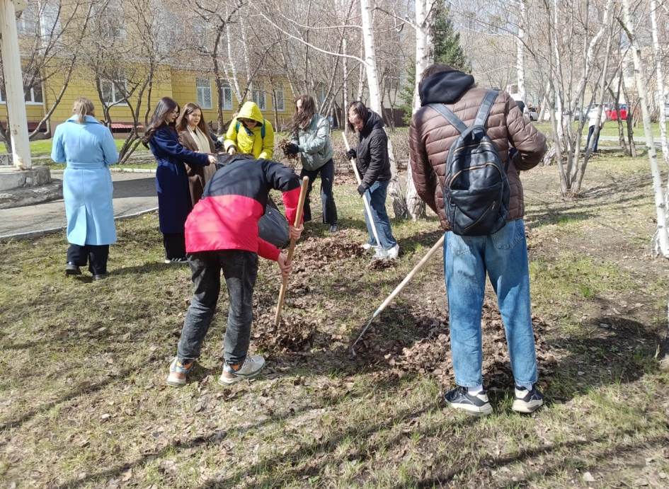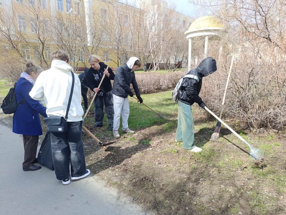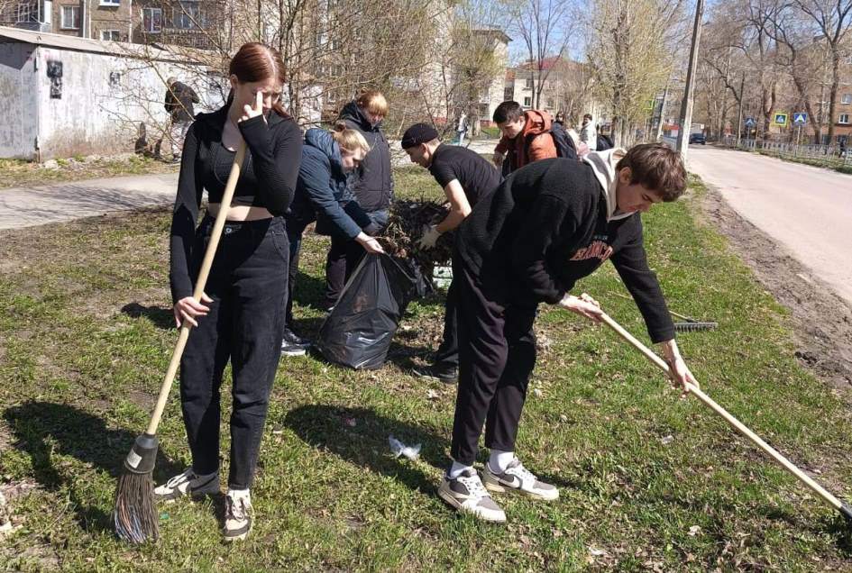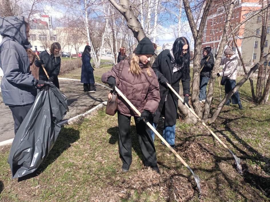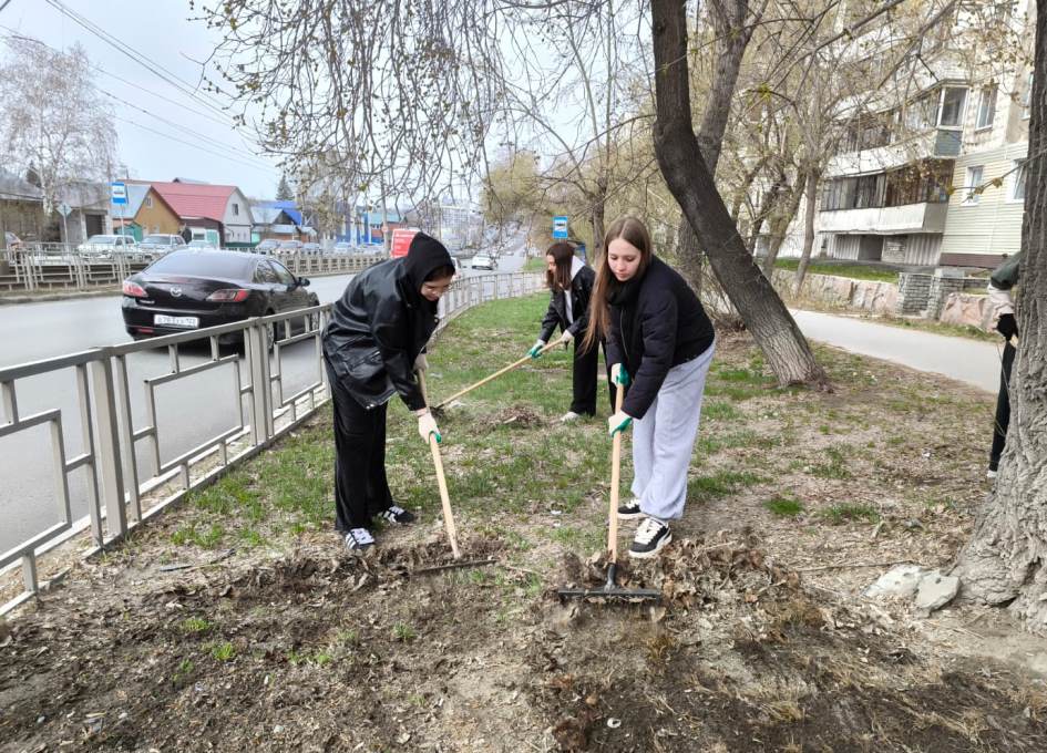 Студенты Алтайского промышленно-экономического колледжа убирали прошлогоднюю листву и мусор на аллее по улице Смирнова, а также на пересечении улиц 80-й Гвардейской Дивизии и Северо-Западной.