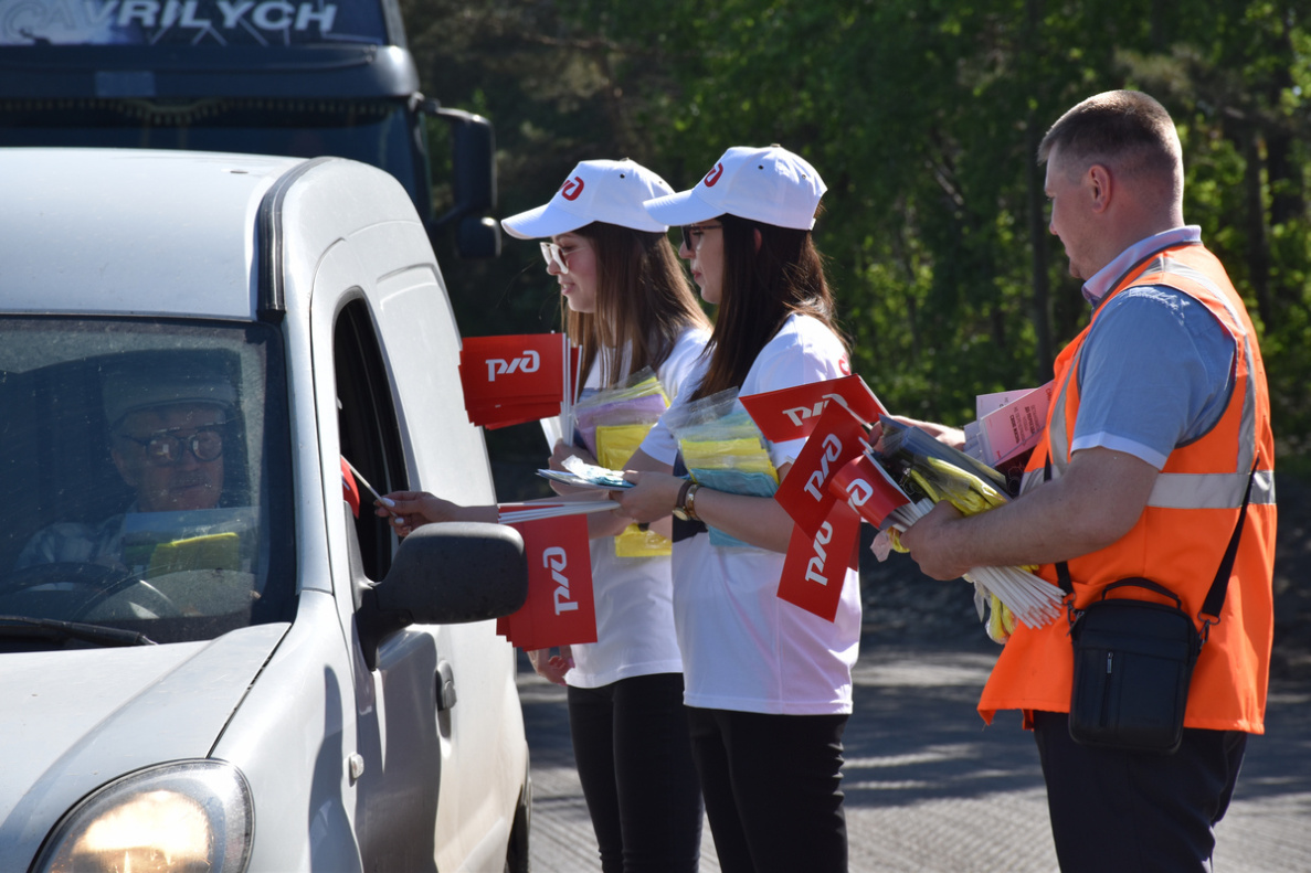 Барнаульский медведь вместе с сотрудниками ГИБДД, железнодорожниками и волонтерами раздавал участникам автомобильного движения профилактические листовки и памятные сувениры, призвал не нарушать правила дорожного движения на железнодорожных переездах.