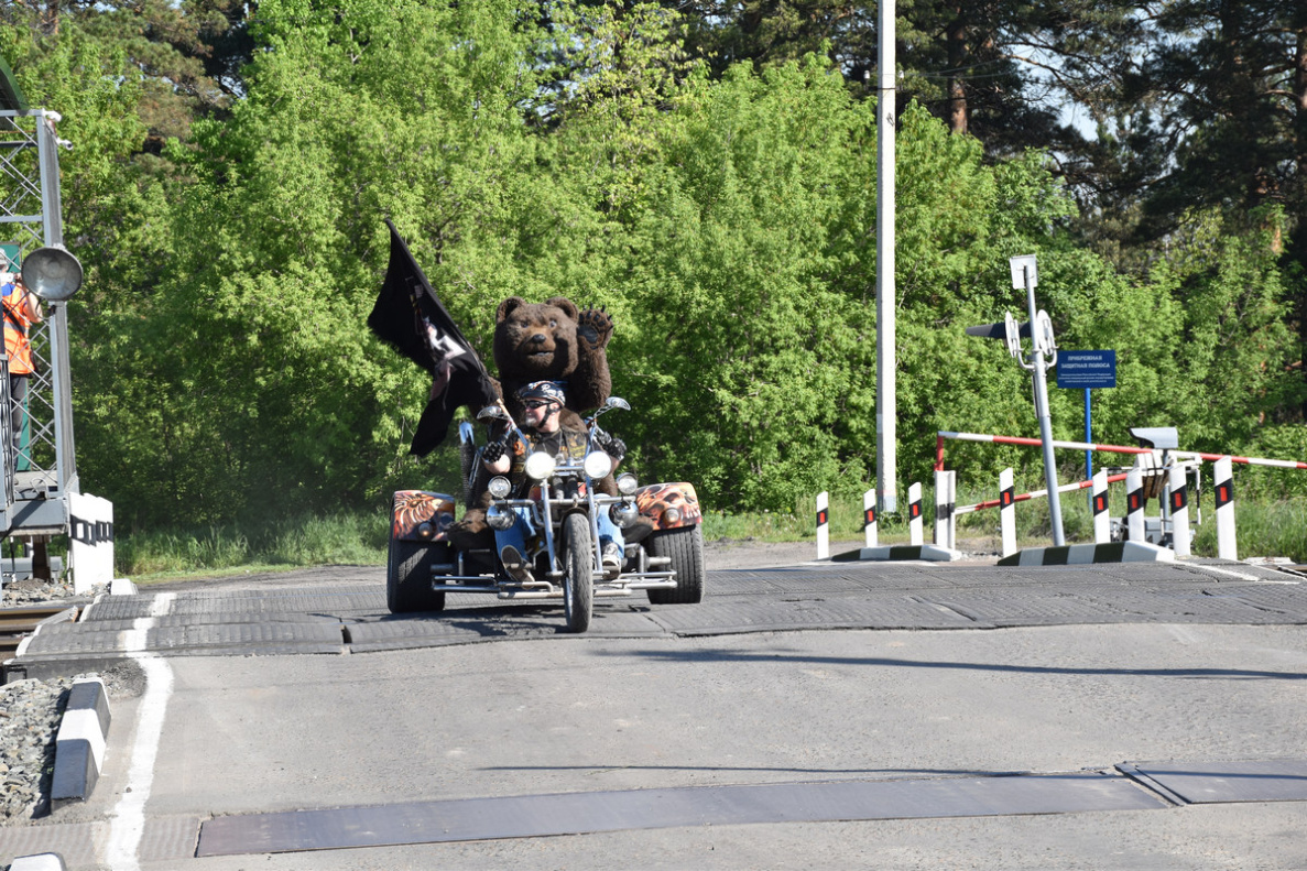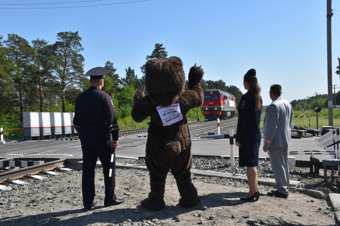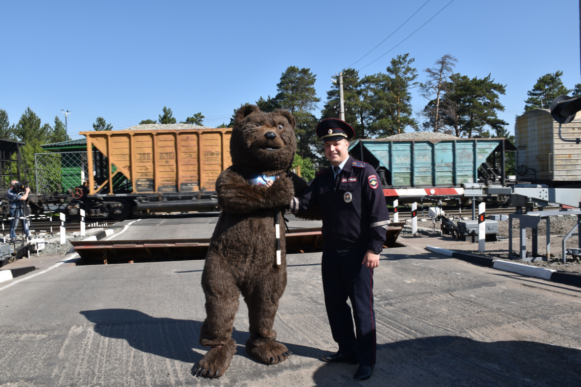 7 июня, в Международный день безопасности на железнодорожных переездах, туристический символ Барнаула – Медведь стал участником профилактической акции «Внимание, переезд!»