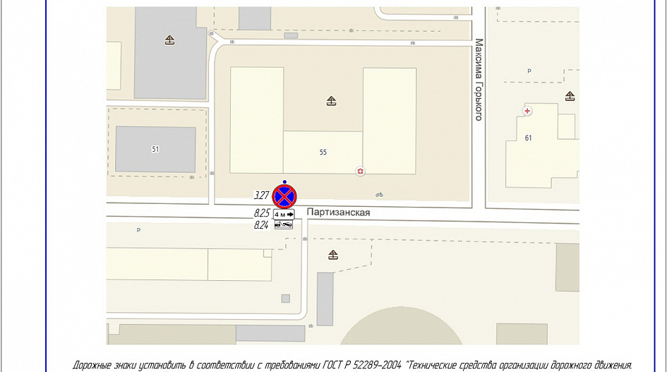 Аналогичные знаки установят 9 апреля и в районе здания №55 по ул.Партизанской для беспрепятственной погрузки-разгрузки продовольственных товаров в магазин.
