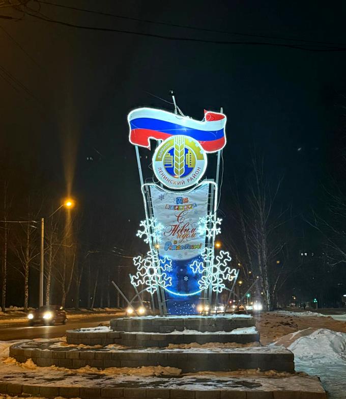 Празднично оформлены стелы по ул.Юрина и на пересечении пр-та Космонавтов-пр-та Ленина.