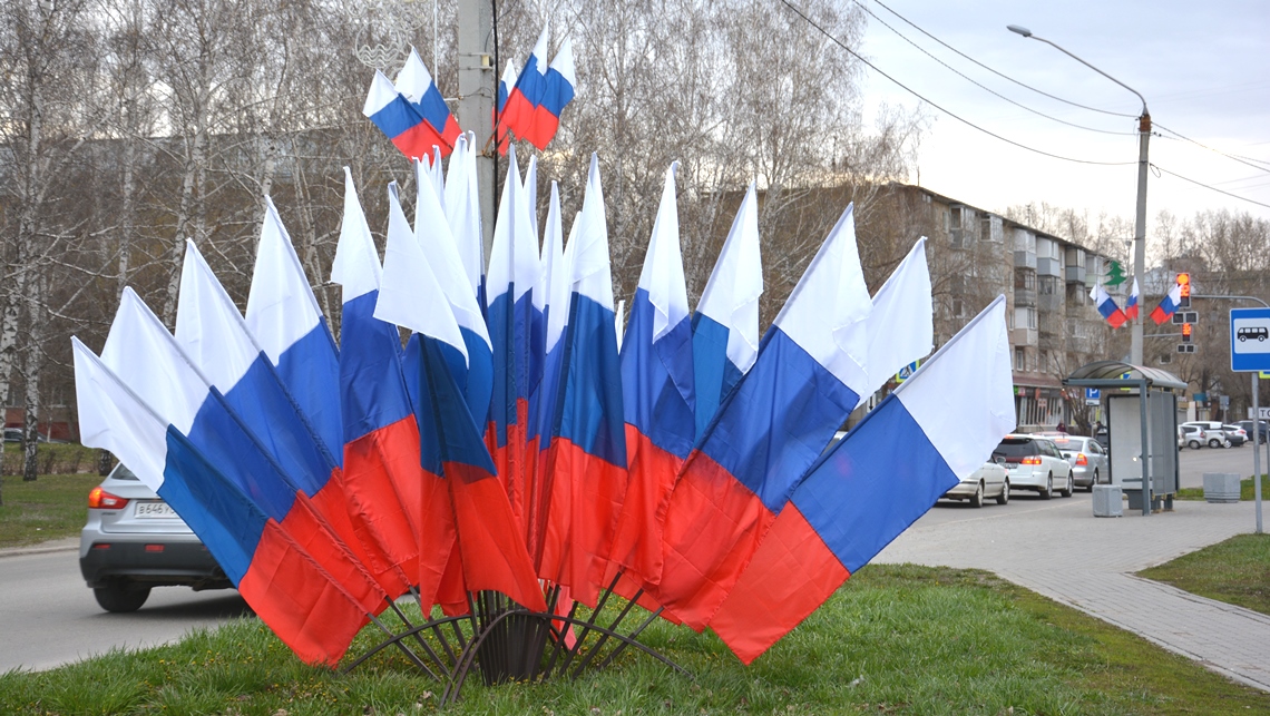 Флажные костры и флаговые конструкции появились на главных транспортных развязках и общественных пространствах района, опорах уличного освещения.