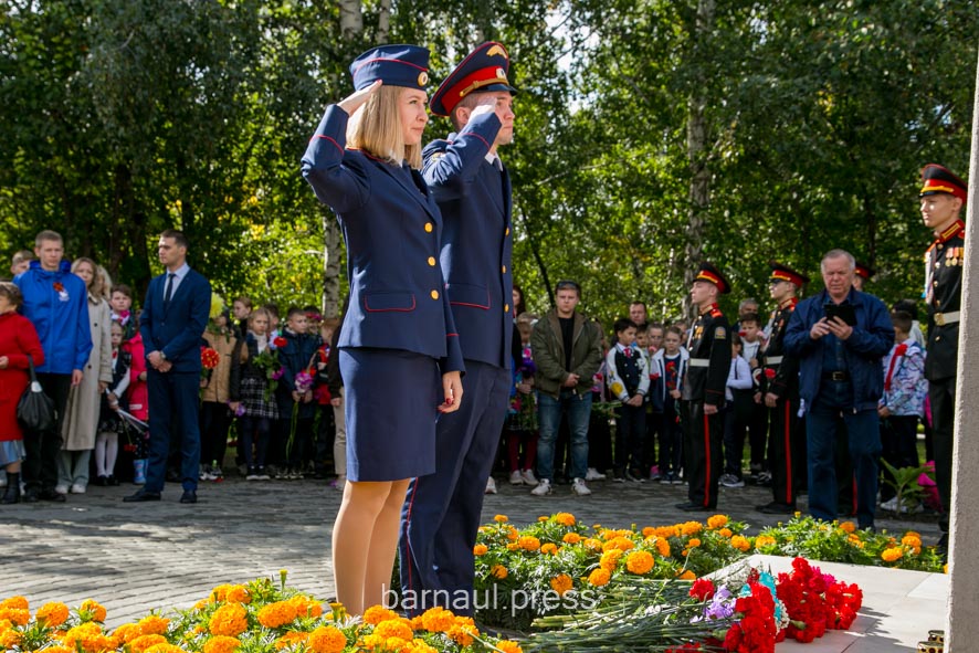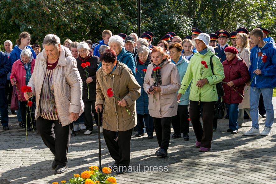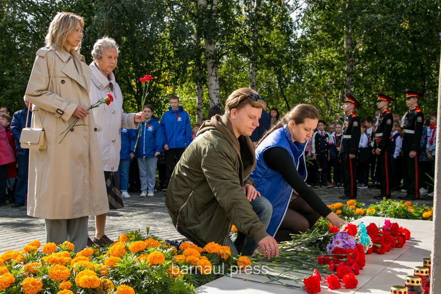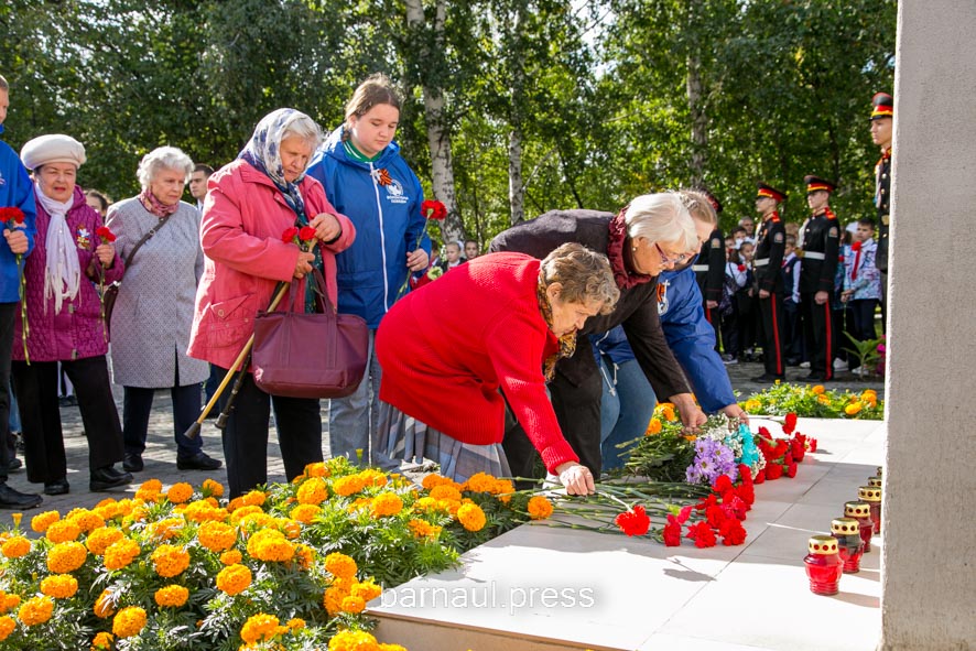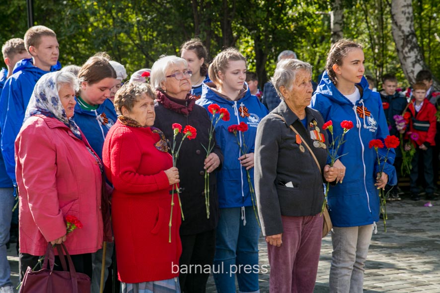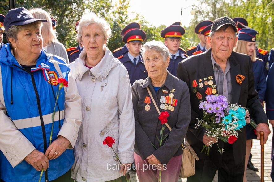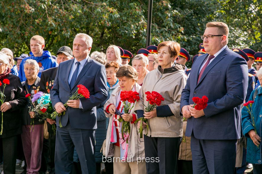 В торжественной церемонии приняли участие: председатель краевой общественной организации «Жители блокадного Ленинграда» Светлана Ерыгина, барнаульские ветераны и курсанты, представители Алтайского регионального отделения Всероссийского общественного движения «Волонтеры Победы», школьники и др.