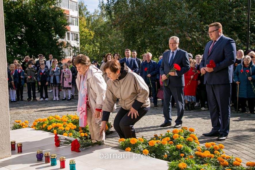 Заместитель главы администрации города по социальной политике Александр Артемов, председатель Барнаульской городской Думы Галина Буевич, глава Индустриального района Денис Летягин почтили память ленинградцев - блокадников и их героических защитников возложением цветов к мемориальному знаку, установленному в память об освобождении Ленинграда.