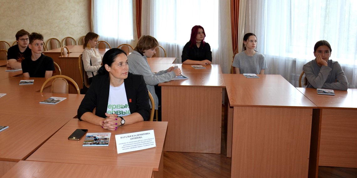Специалист по организации работы в городе Барнауле регионального отделения Общероссийского общественно-государственного движения детей и молодежи «Движение первых» Алтайского края Наталья Антипова проинформировала об основных целях и задачах регионального отделения, способах вступления в ряды «Движения Первых».