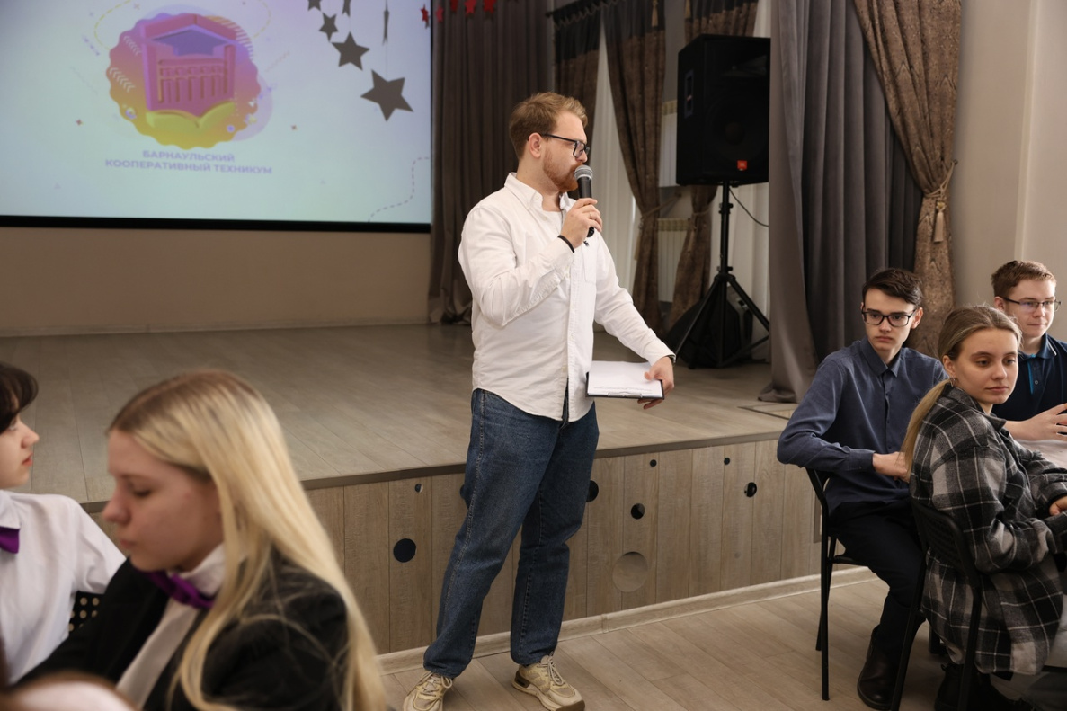 В Барнаульском кооперативном техникуме Алтайского крайпотребсоюза 25 марта в актовом зале состоялась интеллектуально-развлекательная игра «Мы за здоровый образ жизни!» среди команд из средних профессиональных образовательных учреждений. В начале игры перед студенческой молодежью выступили официальный представитель Управления ФСБ России по Алтайскому краю на тему «Противодействия экстремизму и терроризму» и сотрудник Управления по контролю за оборотом наркотиков ГУ МВД России по Алтайскому краю с освещением вопроса о противодействии распространению наркотических средств.