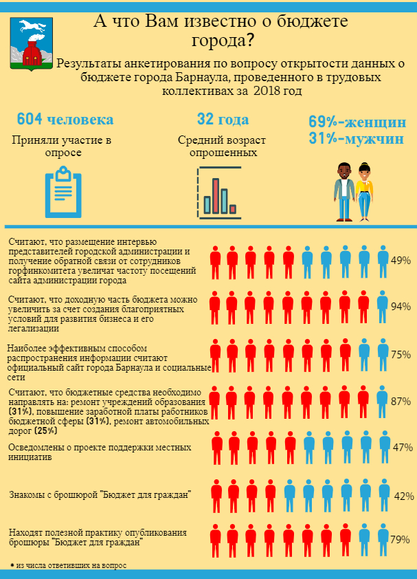 По информации комитета по финансам, налоговой и кредитной политике города, в 2018 году в анкетировании на эти темы приняли участие 604 человека, в 2016-2017 годах - 712 человек.