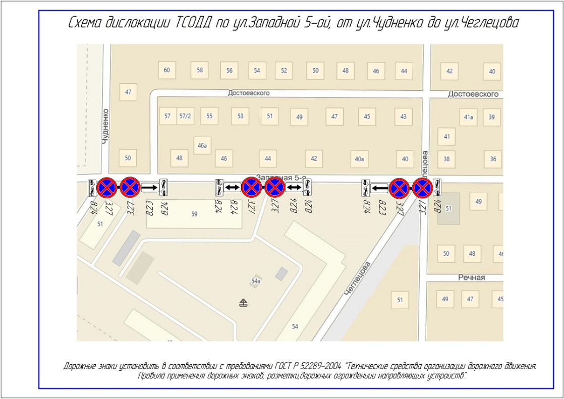 Для обеспечения беспрепятственного проезда техники, обслуживающей автомобильную дорогу и тротуар по улице 5-й Западной, знаки, запрещающие остановку, появятся на нечетной стороне этой улицы, на участке от ул.Чудненко до ул.Чеглецова (схема 4).