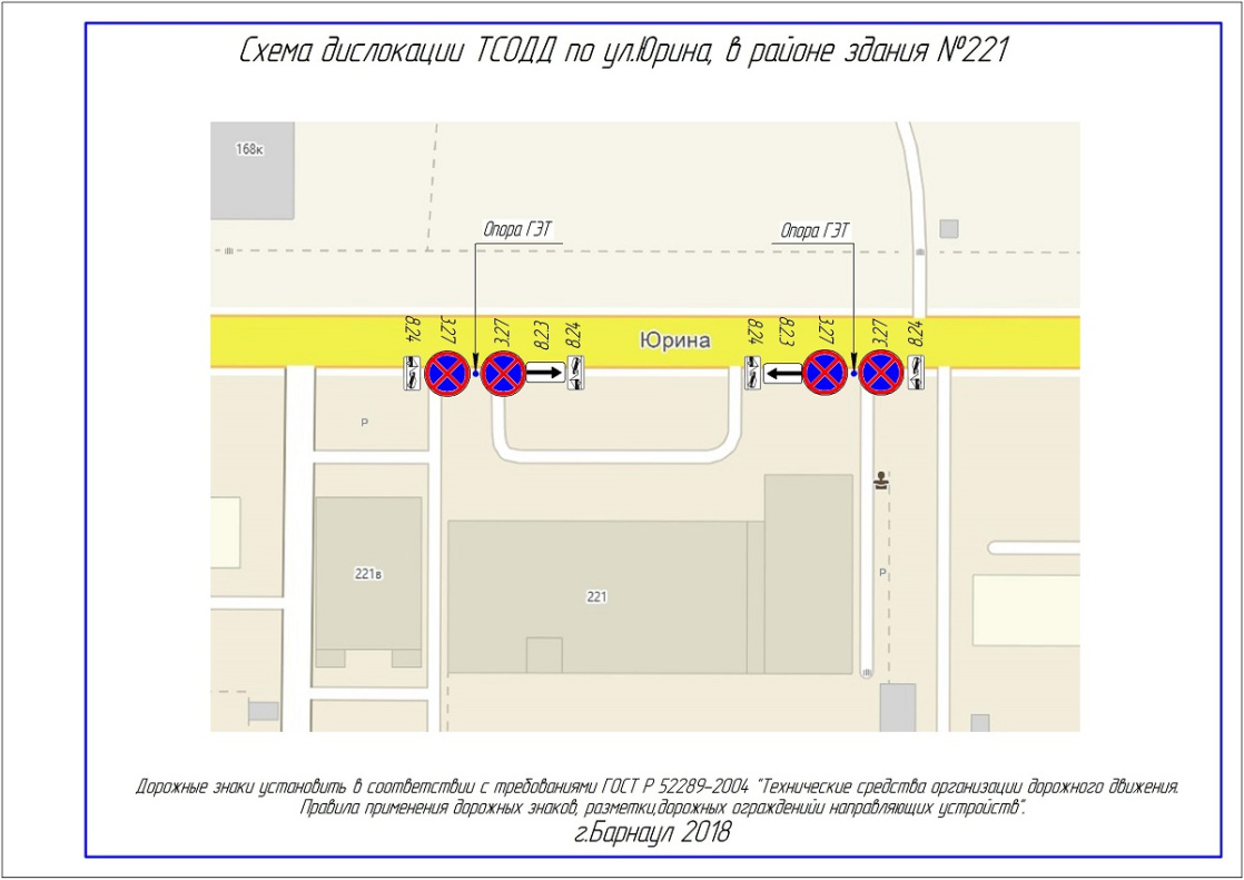 Так, в целях беспрепятственного выезда специализированных автомобилей пожарной охраны дорожные знаки «Остановка запрещена» и «Работает эвакуатор» установят по нечетной стороне ул.Юрина в районе здания №221 (схема 1).