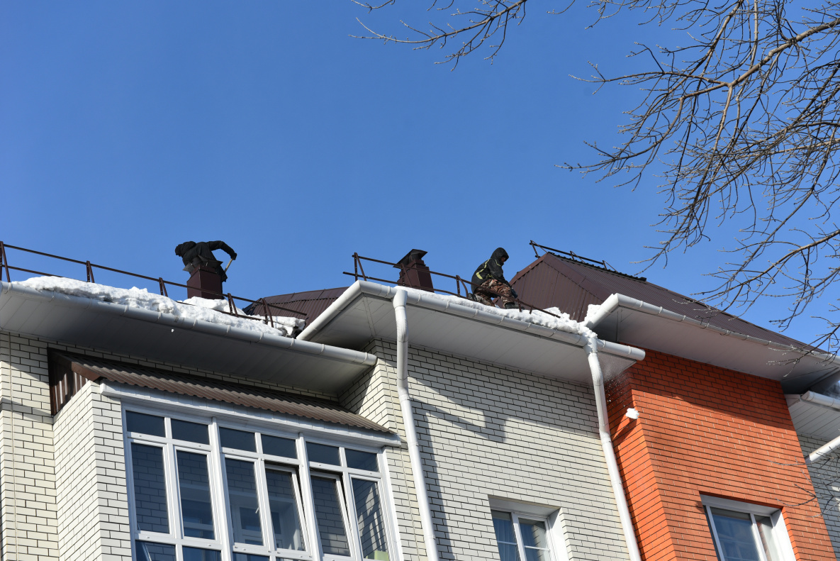 В Барнауле на особом контроле остается уборка крыш домов от снега и наледи